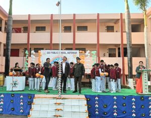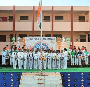 कोटद्वार। बलभद्रपुर स्थित डी ए वी पब्लिक स्कूल कोटद्वार में 77 वाँ गणतंत्र दिवस का जश्न बड़े धूमधाम से मनाया गया। प्रधानाचार्य नितिन भाटिया ने ध्वजारोहण कर जश्न का शुभारंभ किया।विद्यालय परिवार ने भी पूरे जोश के साथ राष्ट्रगान गाकर देश भक्ति दिखाई । ध्वजारोहण के पश्चात एनसीसी के कैडेट्स ने तिरंगे को सलामी देते हुए विद्यालय प्रांगण में मार्च पास किया ।