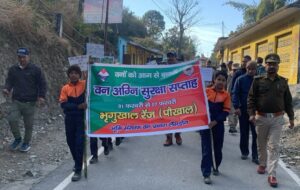 कोटद्वार। भूमि संरक्षण वन प्रभाग, लैन्सडौन की भृगुखाल रेंज, पौखाल के अन्तर्गत सरस्वती शिशु मंदिर पौखाल में वनाग्नि सुरक्षा सप्ताह का आयोजन किया गया। जिसमें भृगुखाल रेंज, पौखाल के वन क्षेत्राधिकारी एवं कर्मचारियों द्वारा सरस्वती शिशु मंदिर, पौखाल के प्रधानाचार्य, प्रधानाध्यापिका एवं स्कूली छात्र-छात्राओं को वन्यजीव सुरक्षा एवं वनाग्नि से बचाव के उपाय की जानकारी दी गई। इसके अतिरिक्त स्कूली छात्र-छात्राओं एवं स्टॉफ द्वारा वनाग्नि जागरुकता रैली निकाली गई। इस रैली में स्कूली बच्चों के अतिरिक्त स्थानीय ग्रामीणों / जन प्रतिनिधियों द्वारा भी प्रतिभाग किया गया।